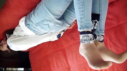 پا بسته پایینی سرگرم کننده بودن دو mammy gotboom و دهان دختران در اسارت تنگ