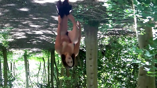 superbe fille déshabille buck nue dans un parc public