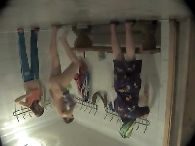 les femmes portent leurs magnifiques nichons dans la chambre des casiers