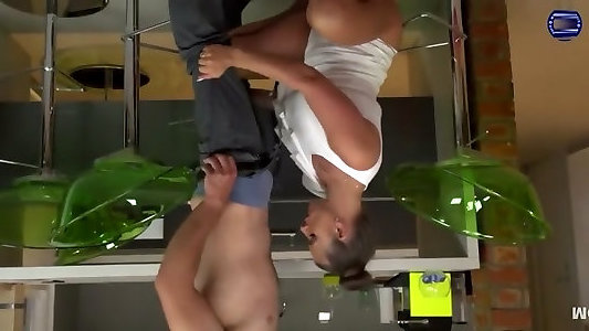 une milf élégante coincée par son beau-fils à la maison