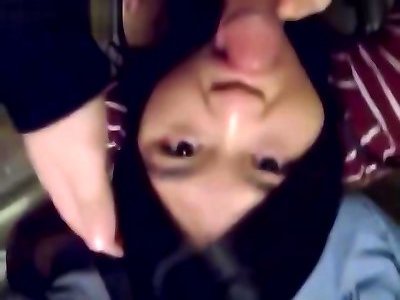 la nymphe asiatique suce profondément un énorme salami de bonne taille complètement sec