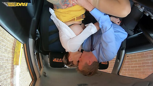 fausse école de conduite jism cooch couvert pour les britanniques aux gros seins