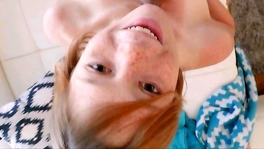 alex, rousse coquine, montre ses taches de rousseur, son grand sourire et sa fente serrée et humide de 18 ans