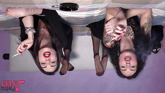 magnifique petra et dollyc discutent et fument en position de pose