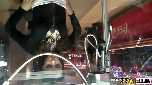longues jambes hilarant tatted ultra-cutie clignote ses seins et donne de loral à lébène collègues