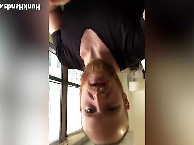jokey souple rousse fap avec un faux pénis droit sur le sol