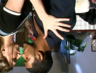 brunette folle suce et se fait botter le cul par un livreur noir