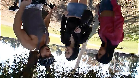 orgie publique à trois au bord de la piscine ouverte avec des soins du visage et une fellation, un travail à la main