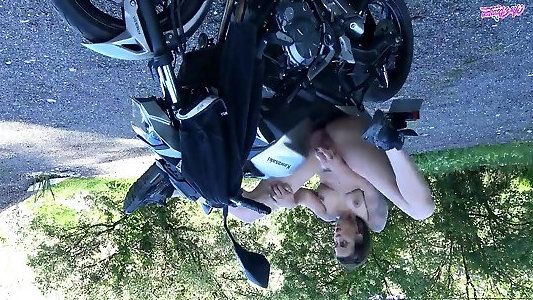 Sluttishly देख गुड़िया झो युवती बढ़ा है पर सही मोटरसाइकिल