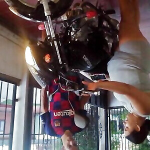 बाइकर शहद लेता है एक फर्म गधा कमबख्त तुला पर एक मोटर साइकिल