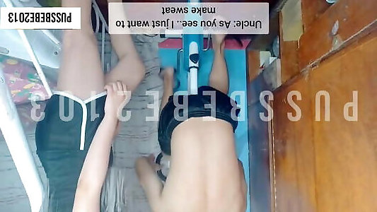 cattivo asiatico masturba su sunbed allaperto e prende lei peloso micio speronato