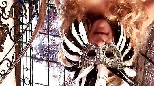 una ragazza bionda curiosa viene sbattuta da un paio di uomini mascherati arrapati