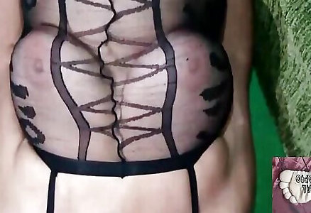 pizzo sul culo e calze di nylon sulle gambe succhiato e scopata