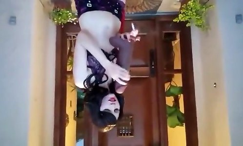 una troietta bianca smilza fuma e poi cavalca un tronco dalbero nero carnoso