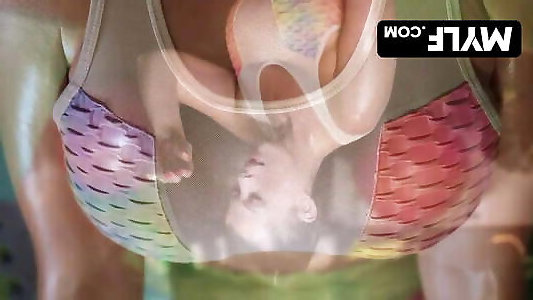 sudato enorme boobed milf in pantaloni di yoga aggiornamenti il suo esercizio
