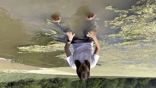 bella bruna in leggings stretti viene scopata su un molo da un militare