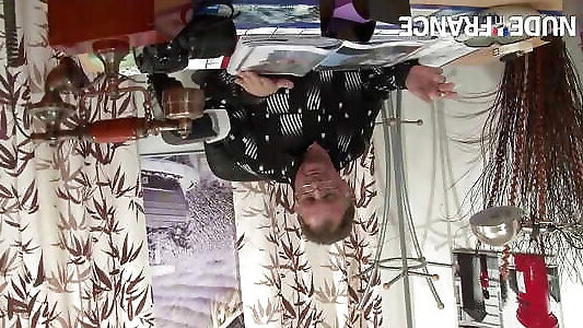 наблюдая, как белокурая милфа-портниха снимает мерки, эрегирует свой