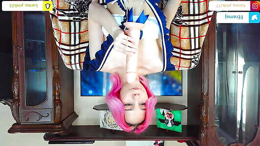 татуированная рыжеволосая кукла заставляет гигантскую трубу исчезать в ее тугой попке