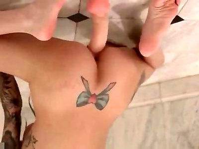 татуированная девушка пробует анальный секс но она тугая и болит своим коричневым сфинктером